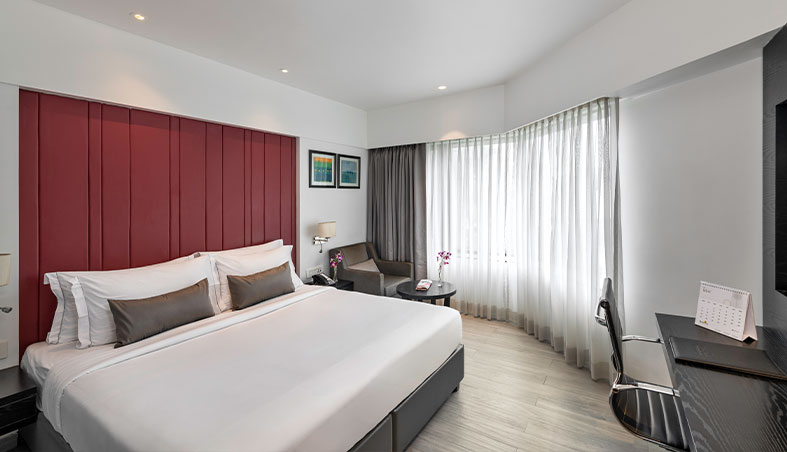 Our well-appointed Standard Rooms are equipped with enhanced modern amenities to meet all the requirements of a modern day traveler. With complimentary Wi-Fi and featuring a queen-size bed or a twin bed, these air-conditioned rooms comprise of a TV, wardrobe, 24-hour room services, mini-bar, coffee / tea maker, Iron and Ironing Board facility, Shoe Polish Facility, Slippers, Dental Kit, Shaving Kit and a lot more.